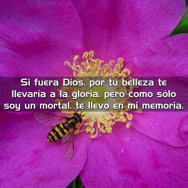 Si fuera Dios, por tu belleza te llevaría a la gloria, pero como sólo soy un mortal, te llevo en mi memoria.