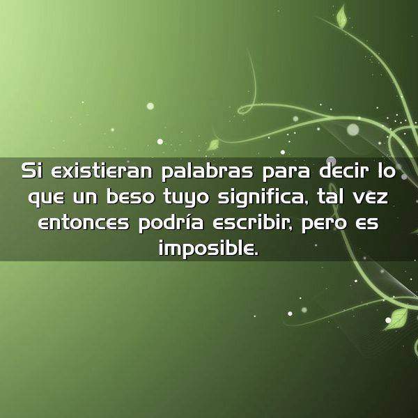 Si existieran palabras para decir lo que un beso tuyo significa, tal vez entonces podría escribir, pero es imposible.