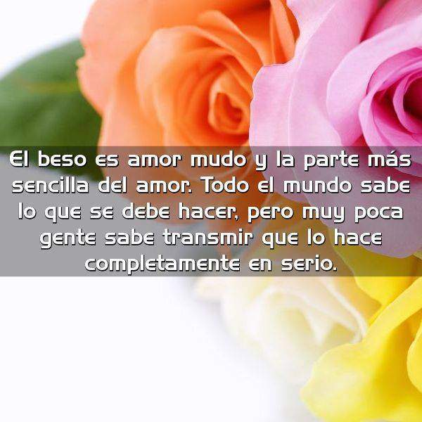 El beso es amor mudo y la parte más sencilla del amor. Todo el mundo sabe lo que se debe hacer, pero muy poca gente sabe transmir que lo hace completamente en serio.
