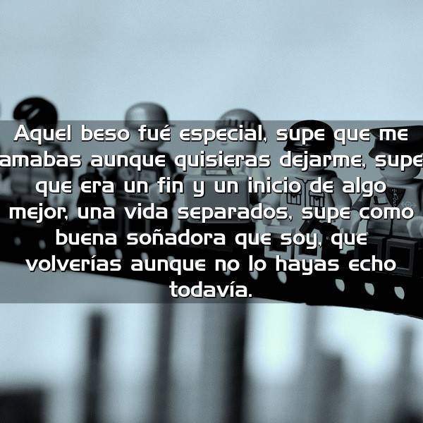 Aquel beso fué especial, supe que me amabas aunque quisieras dejarme, supe que era un fin y un inicio de algo mejor, una vida separados, supe como buena soñadora que soy, que volverías aunque no lo hayas echo todavía.