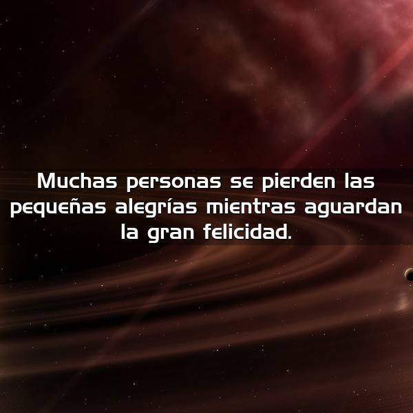 Muchas personas se pierden las pequeñas alegrías mientras aguardan la gran felicidad.