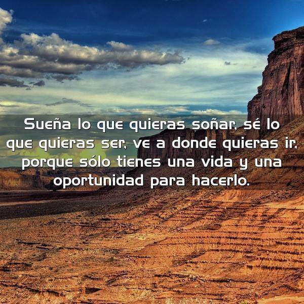 Sueña lo que quieras soñar, sé lo que quieras ser, ve a donde quieras ir, porque sólo tienes una vida y una oportunidad para hacerlo.