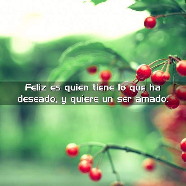 Feliz es quién tiene lo que ha deseado, y quiere un ser amado.