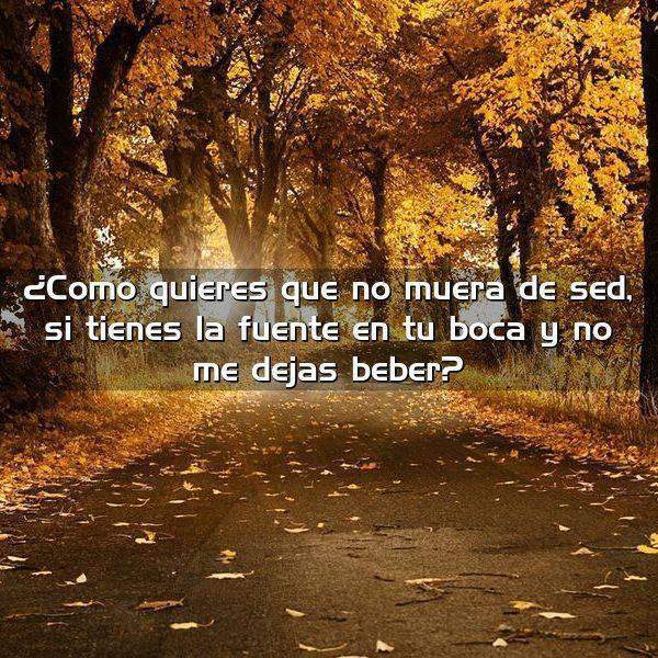 ¿Como quieres que no muera de sed, si tienes la fuente en tu boca y no me dejas beber?