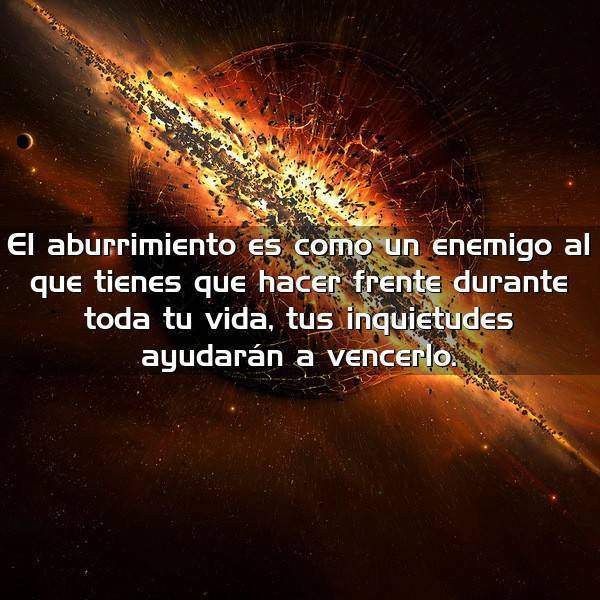 El aburrimiento es como un enemigo al que tienes que hacer frente durante toda tu vida, tus inquietudes ayudarán a vencerlo.