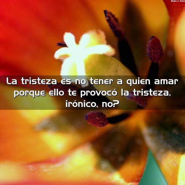 La tristeza es no tener a quien amar porque ello te provocó la tristeza, irónico, no?