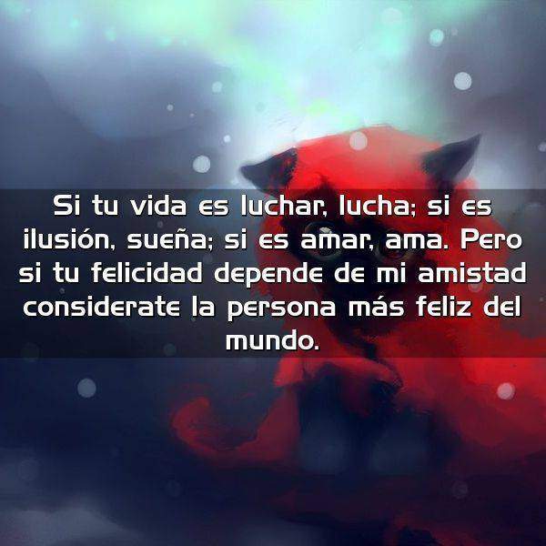 Si tu vida es luchar, lucha si es ilusión, sueña si es amar, ama. Pero si tu felicidad depende de mi amistad considerate la persona más feliz del mundo.