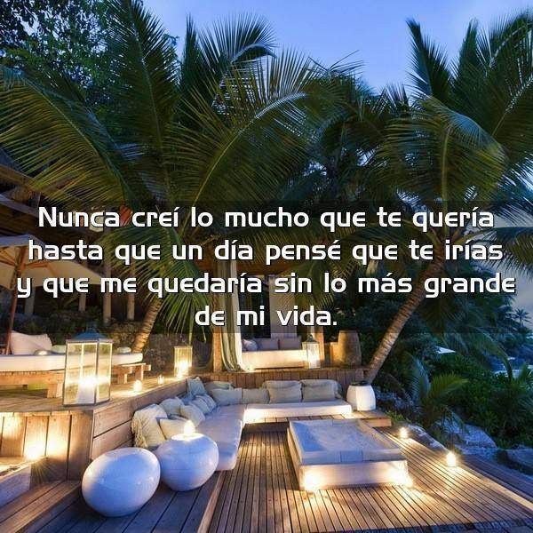 Nunca creí lo mucho que te quería hasta que un día pensé que te irías y que me quedaría sin lo más grande de mi vida.