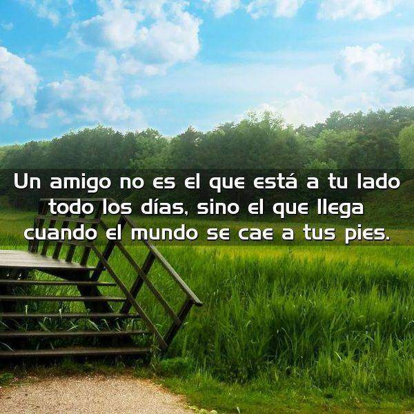 Un amigo no es el que está a tu lado todo los días, sino el que llega cuando el mundo se cae a tus pies.